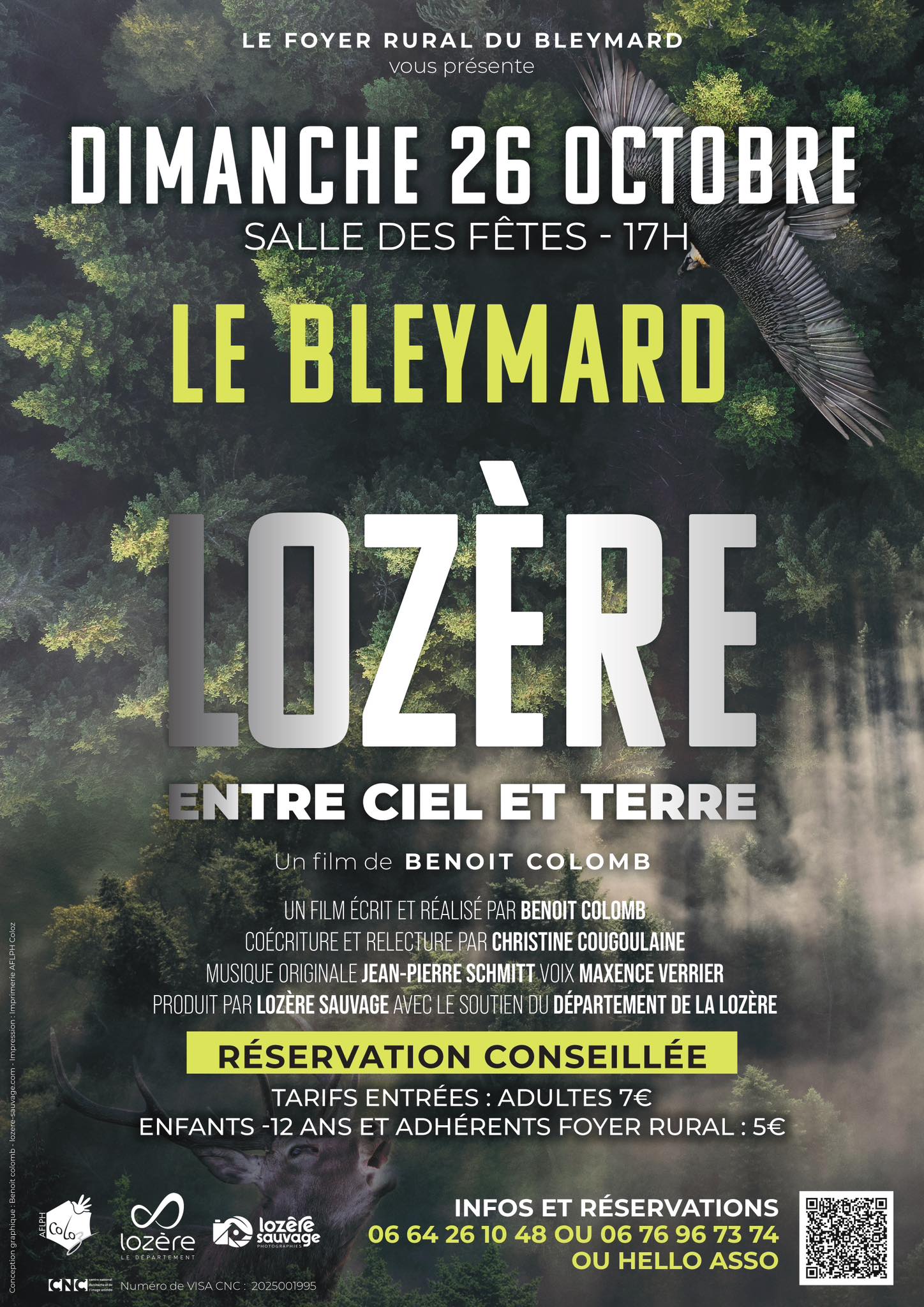 Le foyer rural du Bleymard vous propose la projection du film « Lozère entre ciel et terre » dimanche 26 octobre à 17h à la salle des fêtes du Bleymard.