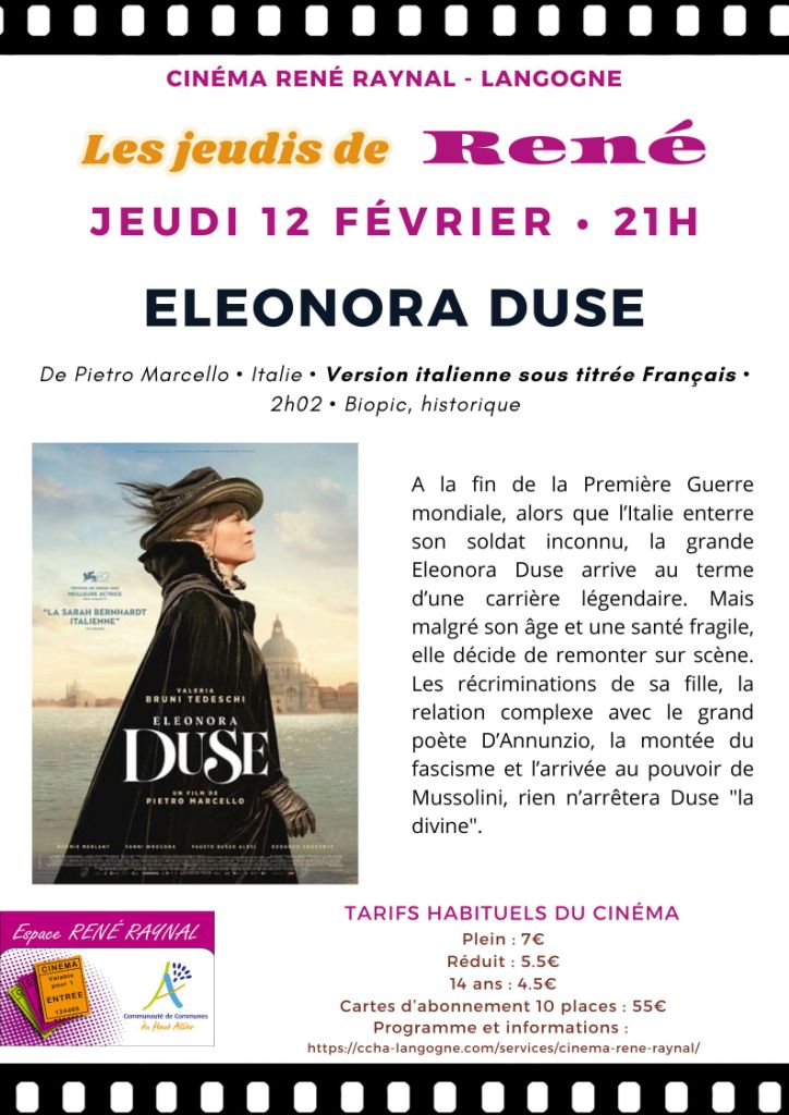 À l'afficheLe 10/02/2026 à 20h15Cinéma Le Trianon - Boulevard Lucien Arnault - 48000 MENDELe 12/02/2026130 Rue Théophile Roussel - 48200 SAINT-CHELY-D'APCHER